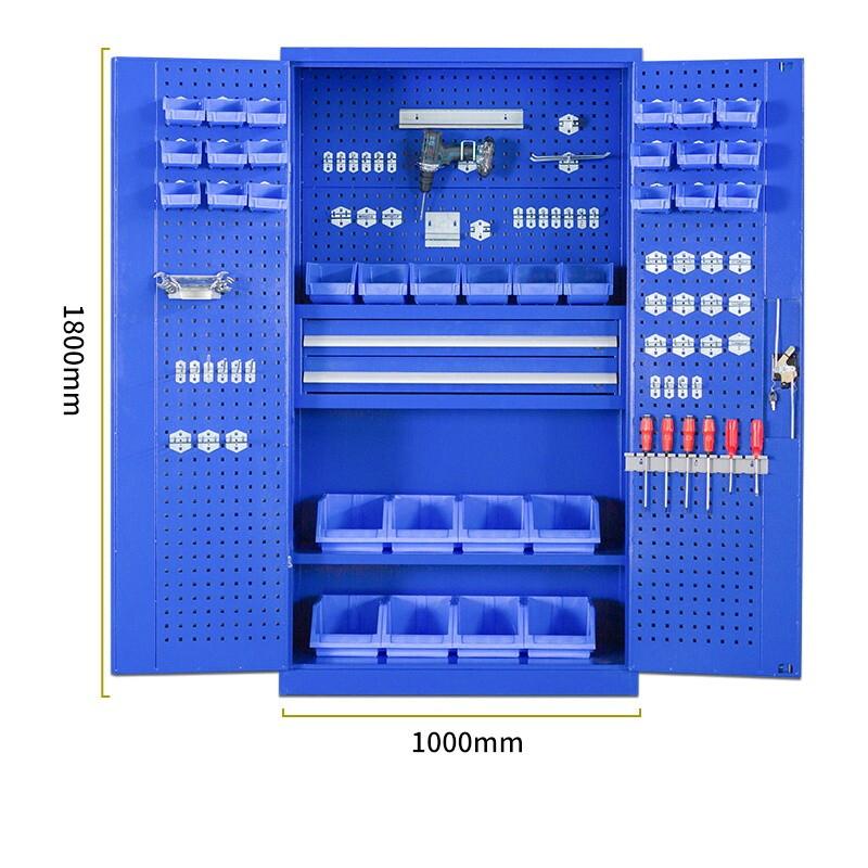 Heavy Tool Cabinet Blue Inner Two Draw 2-layer Plate Mesh 1000 * 500 * 1800mm Hardware Tool Factory Workshop Storage And Finishing Cabinet
