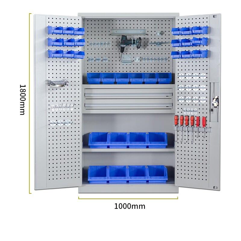 Heavy Duty Tool Cabinet Gray White Inner Two Draw 2-layer Plate Mesh 1000 * 500 * 1800mm Hardware Tool Factory Workshop Storage And Finishing Cabinet