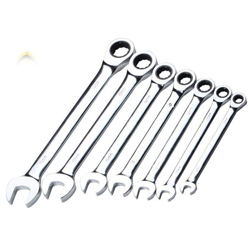 7-Piece Quick Ratchet Wrench Dual Purpose Open Ring Wrench Automatic Wrench Hardware Tool Wrench Set