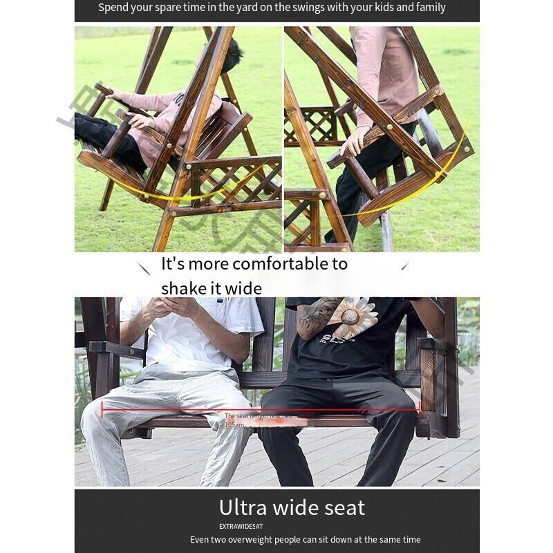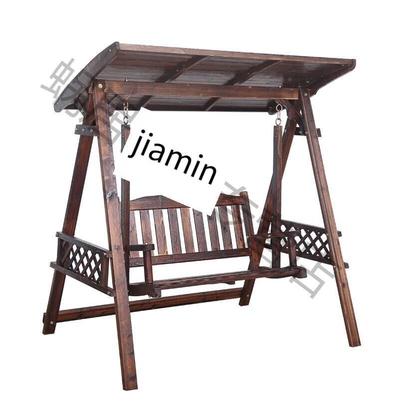 Outdoor Solid Wood Swing Courtyard Rocking Chair Balcony Anti-corrosion Swing Double Hanging Chair Hammock With Ceiling Luxury Swing