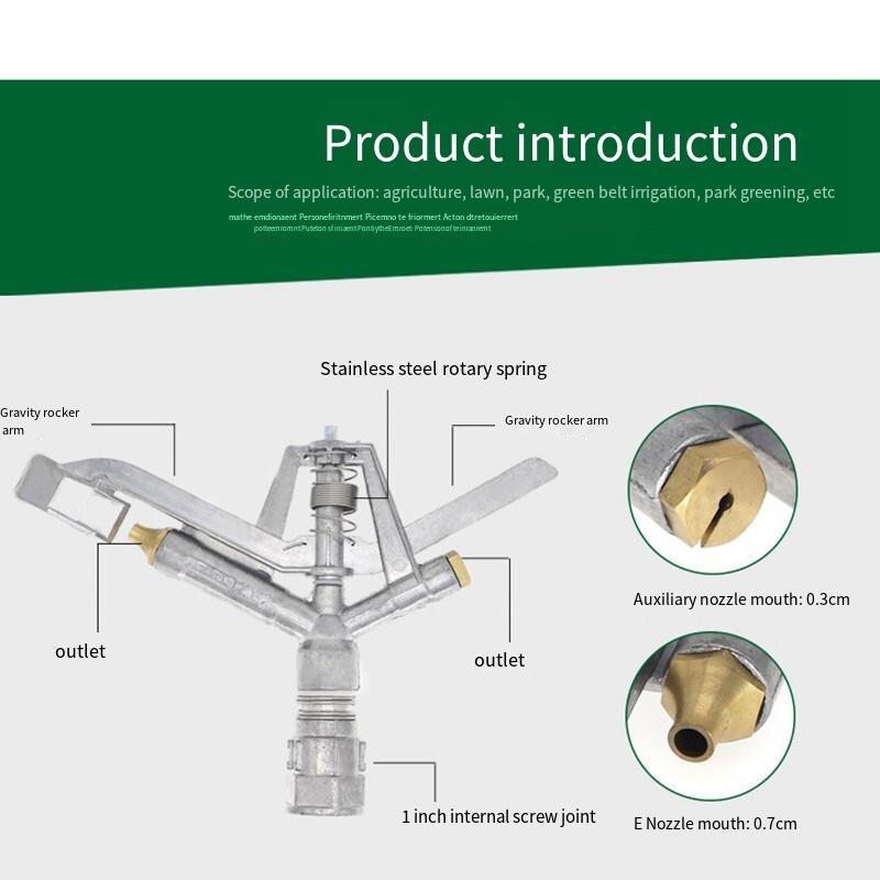 Agricultural Rocker Nozzle Automatic Rotation Lawn Greening 360 Degree Garden Sprinkler Irrigation Sprinkler Watering Artifact 1-inch Alloy Rocker Nozzle