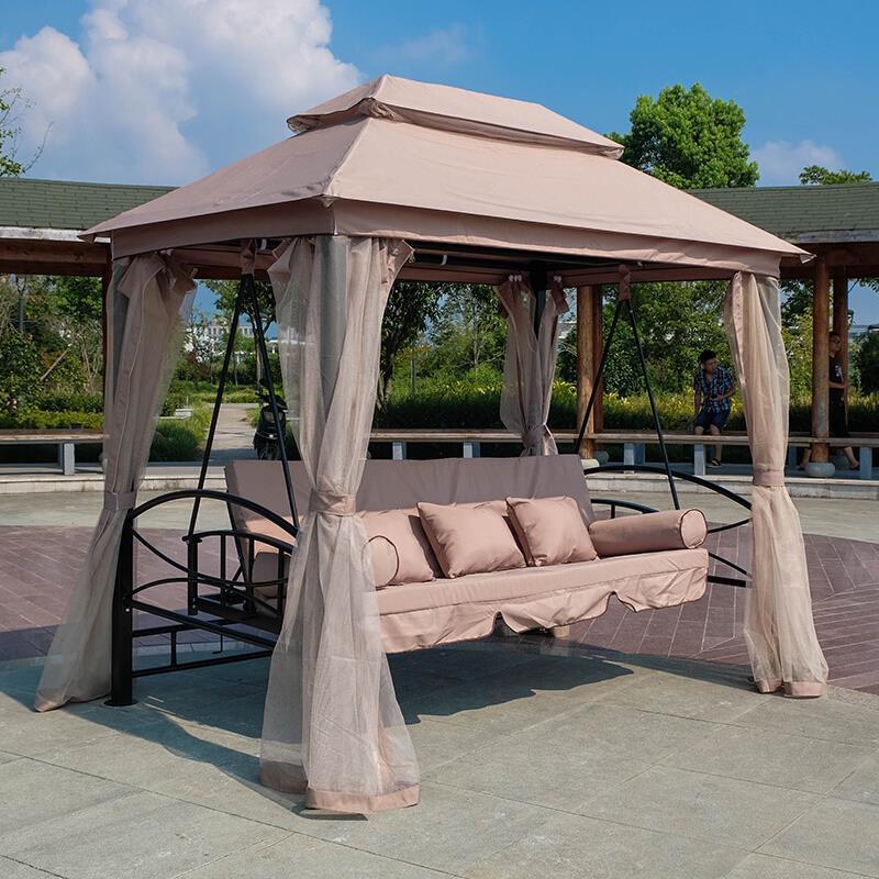 Balcony Hanging Chair Reclining Outdoor Swing Tent Rocking Iron Hammock Indoor Balcony Reclining Chair Villa Courtyard Outdoor Rocking Bed Courtyard Khaki - Can Seat And Lie [+ Gauze Curtain]