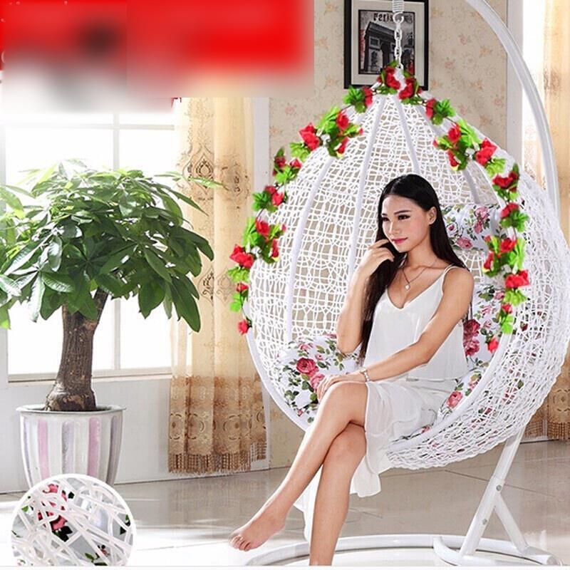 Balcony Hanging Chair Outdoor Dormitory Cradle Chair Leisure Hammock Adult Rocking Chair Lazy Sunshine Reclining Chair Bird's Nest Swing Single White