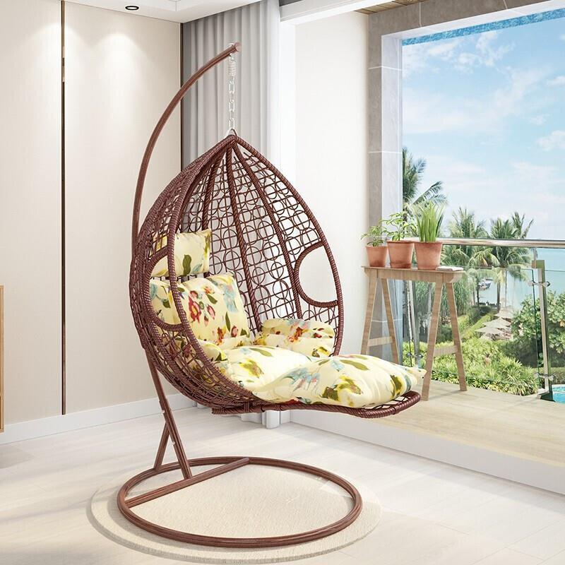 Balcony Hanging Chair Single Double Bedroom Girl Swing Lazy Bird's Nest Bassinet Chair With Cushion Pillow Coffee Color