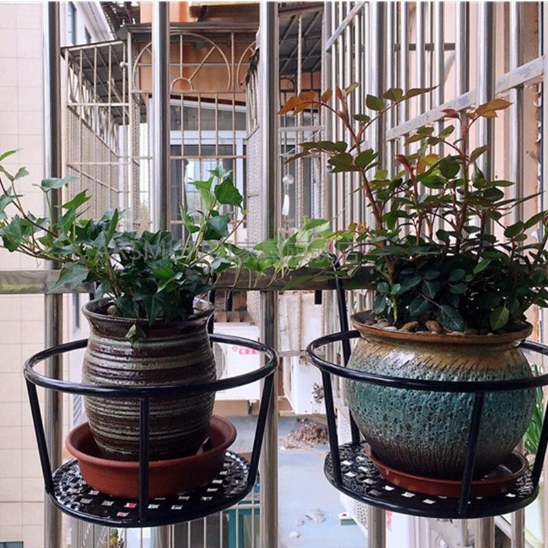 Balcony Hanging Flower Rack, Iron Railing, Guardrail, Windowsill, Green Rose Hanging Orchid Flower Pot Hanger, Black Thickened Mesh Plate, Three Sets