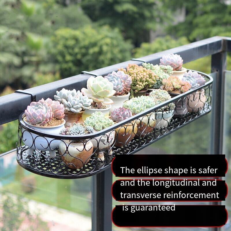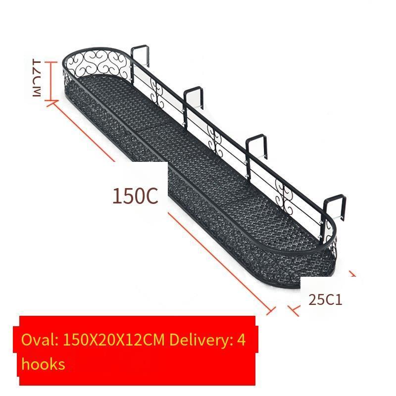 Balcony Railing Flower Rack Hanging Rack Iron Guardrail Hanging Type Flower Pot Storage Hanging Rack Balcony Fleshy Flower Rack Indoor Oval 150 * 20 * 12cm Black