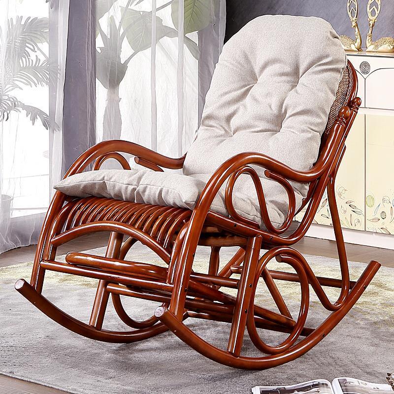 Balcony Real Rattan Weaving Rocking Chair Rattan Chair Reclining Chair Adult Nap Lunch Break Indoor Elderly Leisure Chair