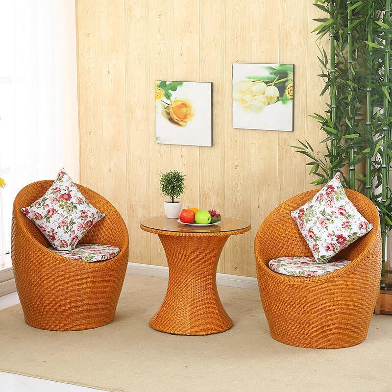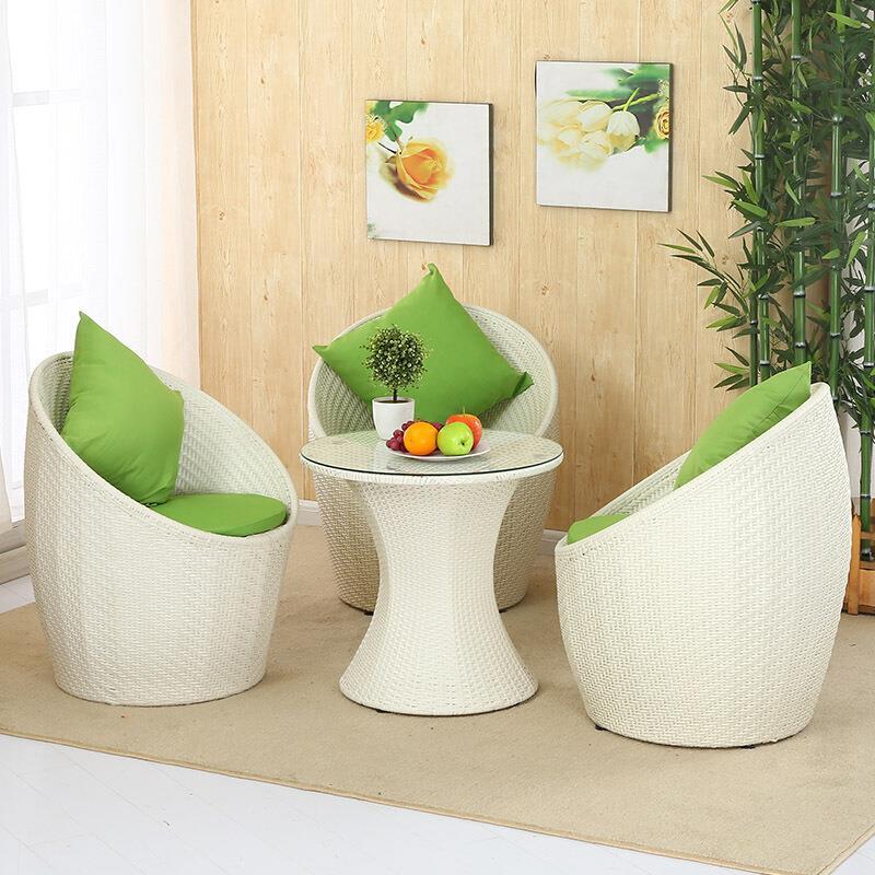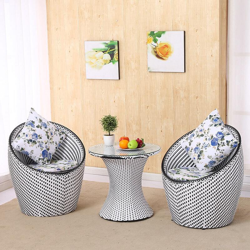 Balcony Table And Chair Rattan Chair Courtyard Chair Bird's Nest Indoor Leisure Chair Tea Table Combination One Table And Two Chairs White