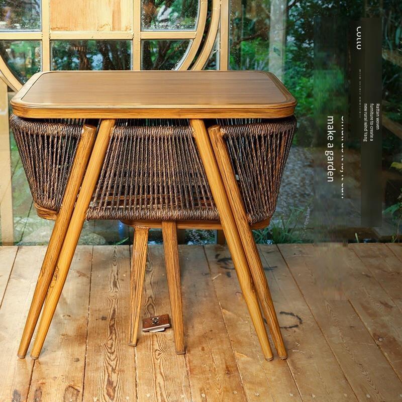 Balcony Table Chair Rattan Chair Three Piece Combination Outdoor Courtyard Furniture Modern Simple Household Tea Table And Chair