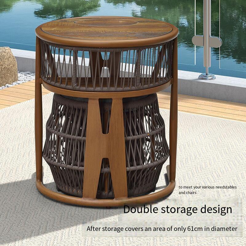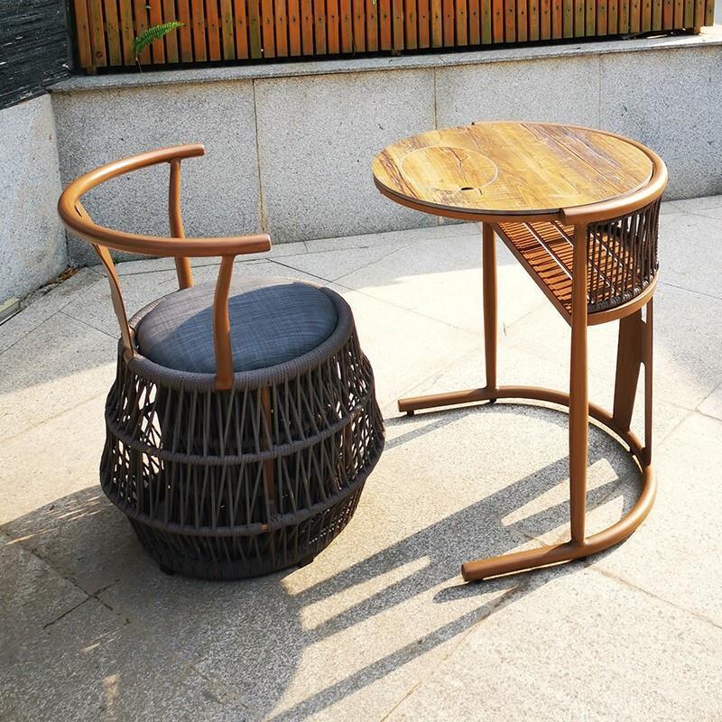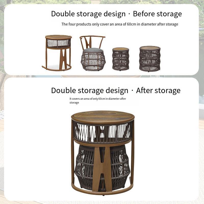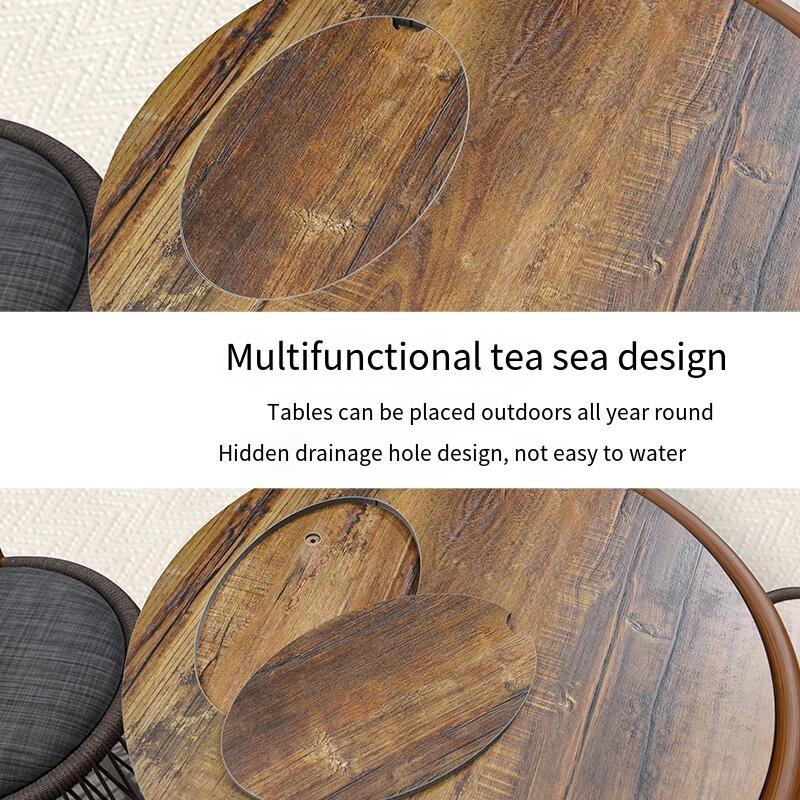 Balcony Tea Table Rattan Chair Three Piece Combination Outdoor Courtyard Tea Tea Table Leisure Brown [master Chair] + 1 [D55 Round Table] With Partition + 2 Stools