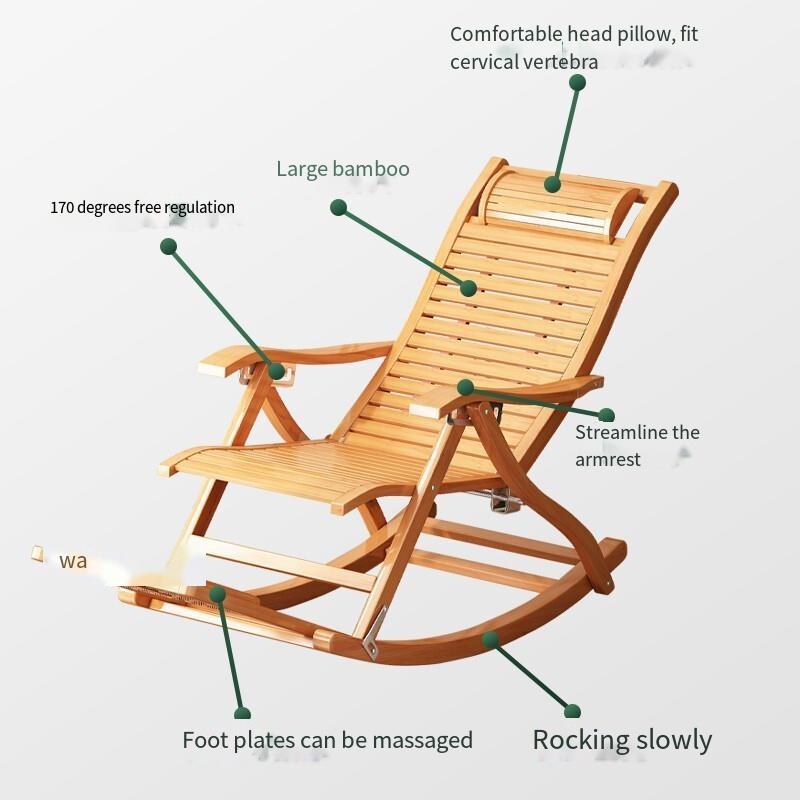 Bamboo Rocking Chair Reclining Chair Lazy Lunch Chair Family Chair Boutique Soft Rocking Chair + Cloth Cushion