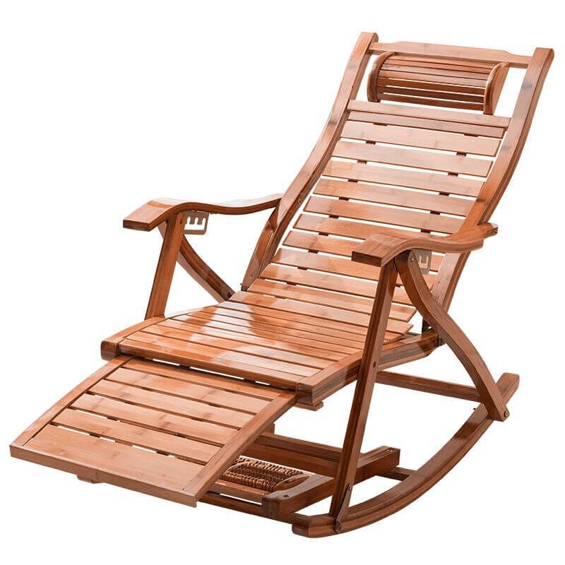 Bamboo Rocking Chair with Comfortable Cushions Folding Sun Lounger Outdoor Relaxer Zero Gravity Recliner Chair Adult Lazy Casual Wood Chair For Home
