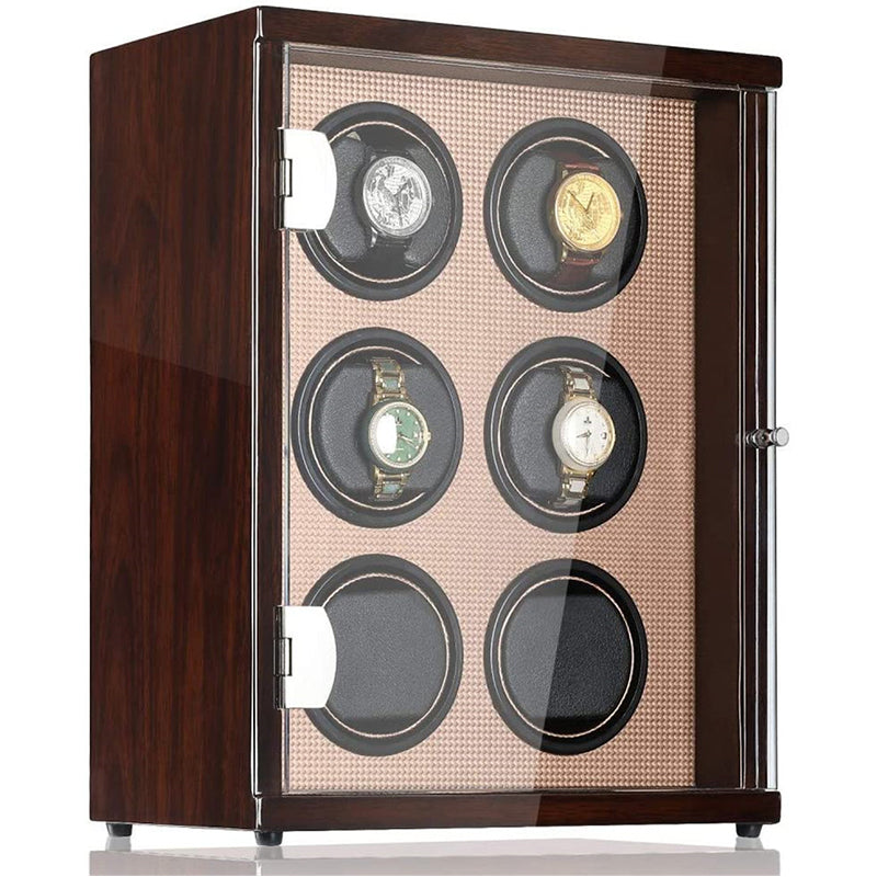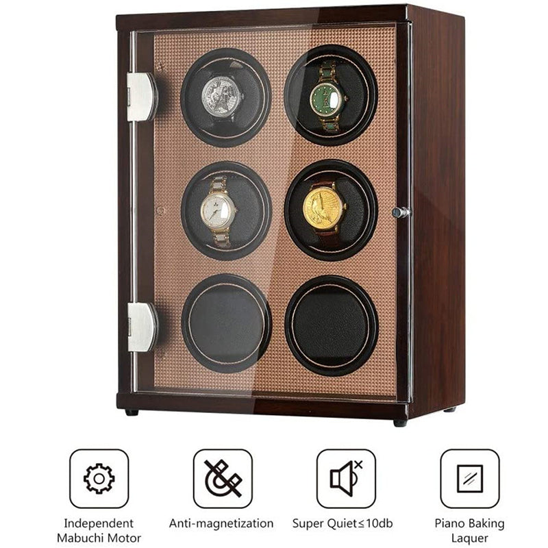 CHIYODA Watch Winder, 6 Watch Winder For Men's And Women's Automatic Watch With Six Mabuchi Motor, LCD Digital Display And High Gloss Brown