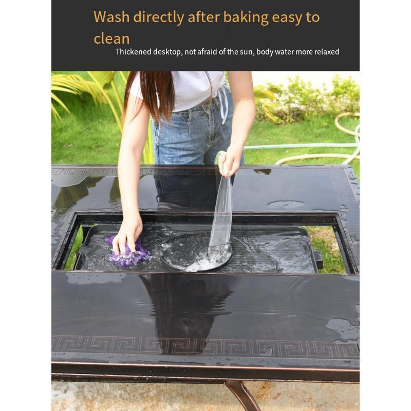 Courtyard Outdoor Balcony Cast Aluminum Table And Chair Home Commercial Full Set Of Combination Barbecue Table And Chair Outdoor Barbecue Table 6 + 1