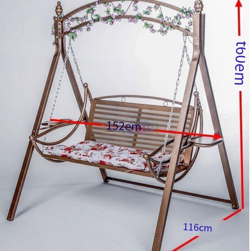 Double Iron Rocking Chair Swing Hammock Reclining Chair Balcony Courtyard Hanging Basket + Rattan + 2 Cushions + Colored Lights + Tools