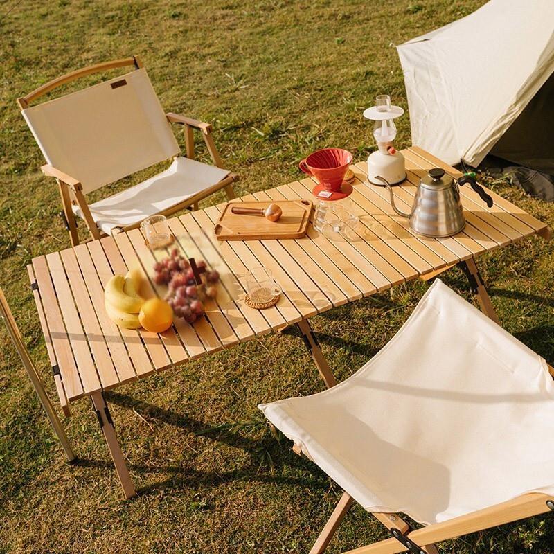 Egg Roll Table Solid Wood Outdoor Folding Table Camping Self Driving Tour Family Travel Equipment Picnic Table And Chair Set