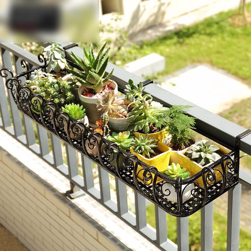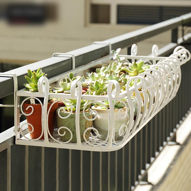 European Style Iron Simple White Railing Flower Rack Household Balcony Guardrail Hanging Green Pineapple Fleshy Flower Rack Wall Hanging Black Flower Pot Rack Hanging Storage Balcony Rack Outdoor Flower Rack 50 * 29 * 16cm