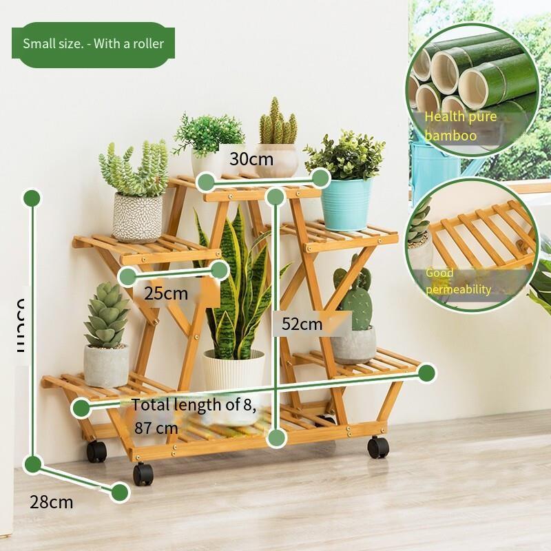 Floor To Floor Multi-storey Balcony Flower Rack Living Room Solid Wood Hanging Green Rose Flower Rack Land European Meat Flower Pot Rack Modern Simple Indoor Chinese Fish Tank Rack Bonsai Rack [healthy Pure Bamboo] Small Model (with Roller)