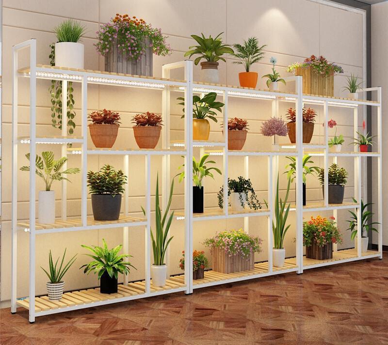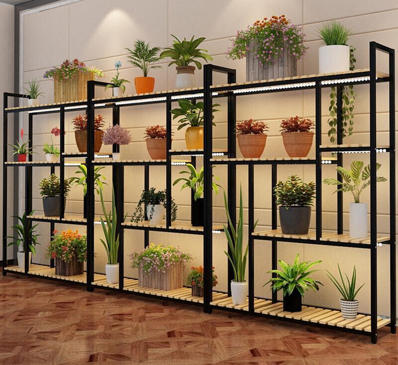 Florist Flower Rack Solid Wood Iron Art Living Room Multi-layer Floor Rack (black Frame + Carbonized Color) 100 * 30 * 107