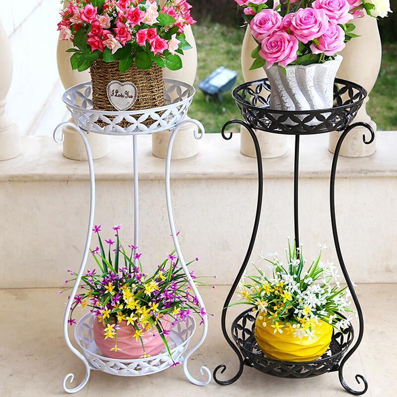 Flower Rack Balcony Green Pineapple Fleshy Flowerpot Rack Floor Type Indoor Living Room Flower Rack European Iron Multi-layer Black 70cm [hj-25]