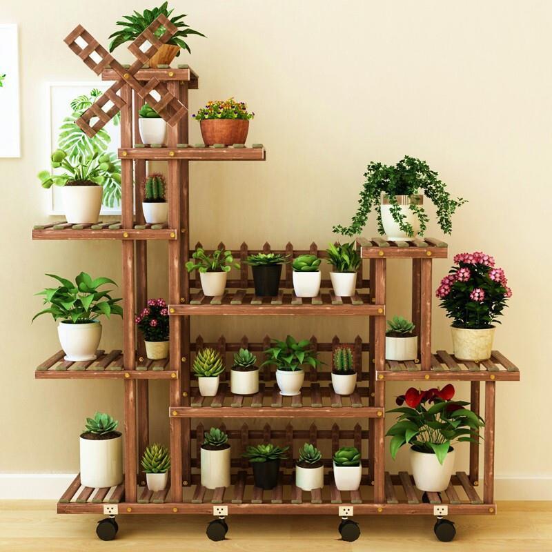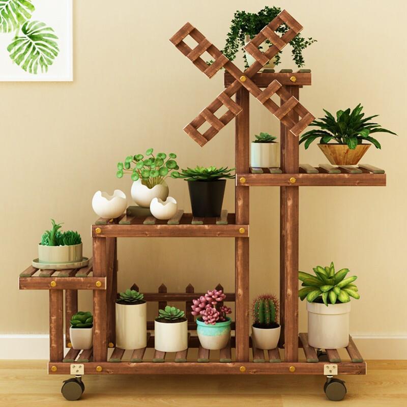 Flower Rack Fleshy Green Pineapple Balcony Storage Solid Wood Multi-storey Living Room Indoor Floor Plant Potted Simple Flower Rack Q Basic Model