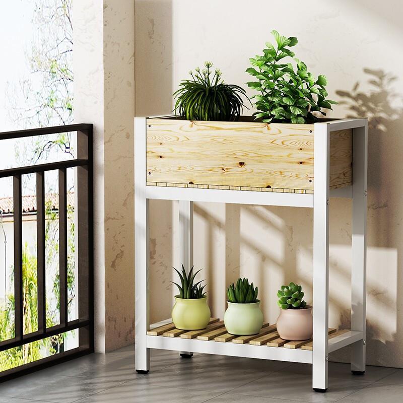 Flower Rack Flower Rack Storage Rack Iron Art Multi-layer Outdoor Anti-corrosion Wood Balcony Floor Stepped Fleshy Green Rose Pot Rack Flower Box