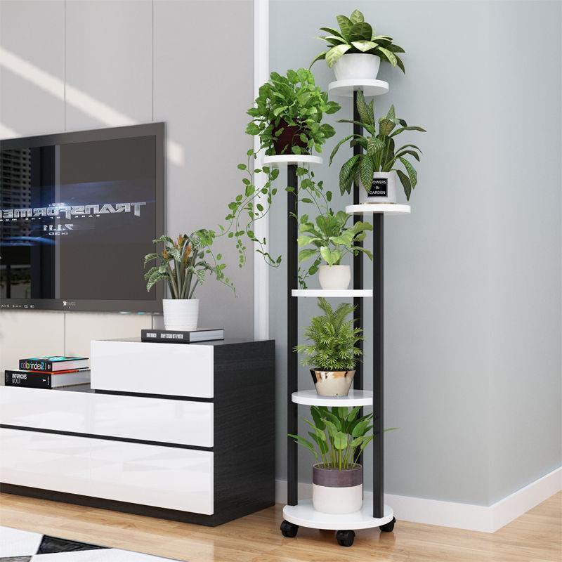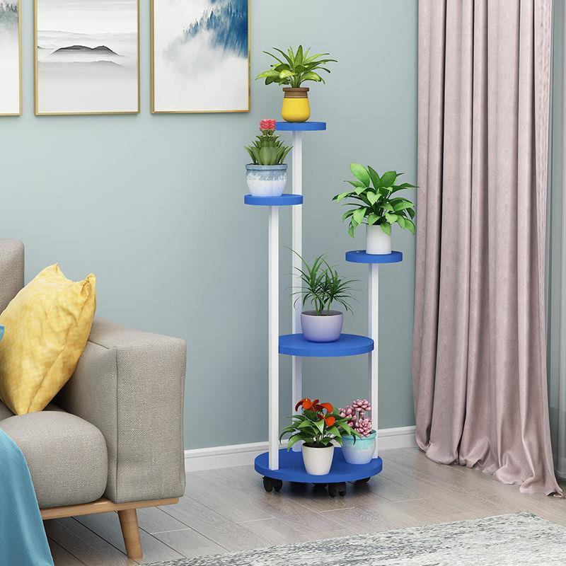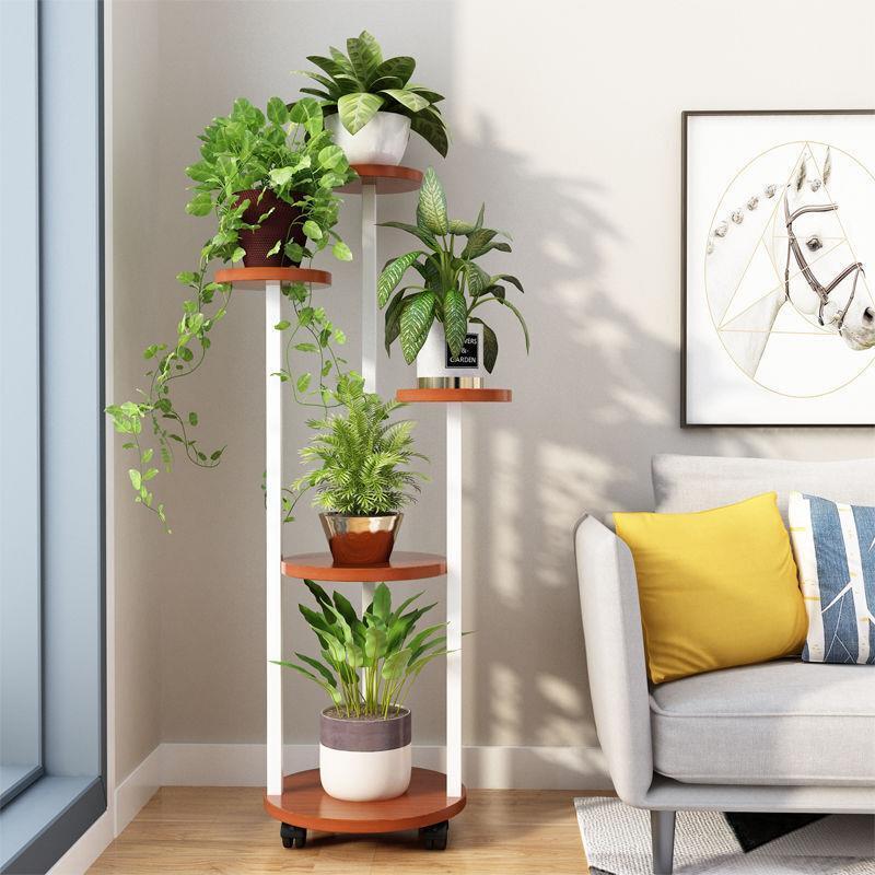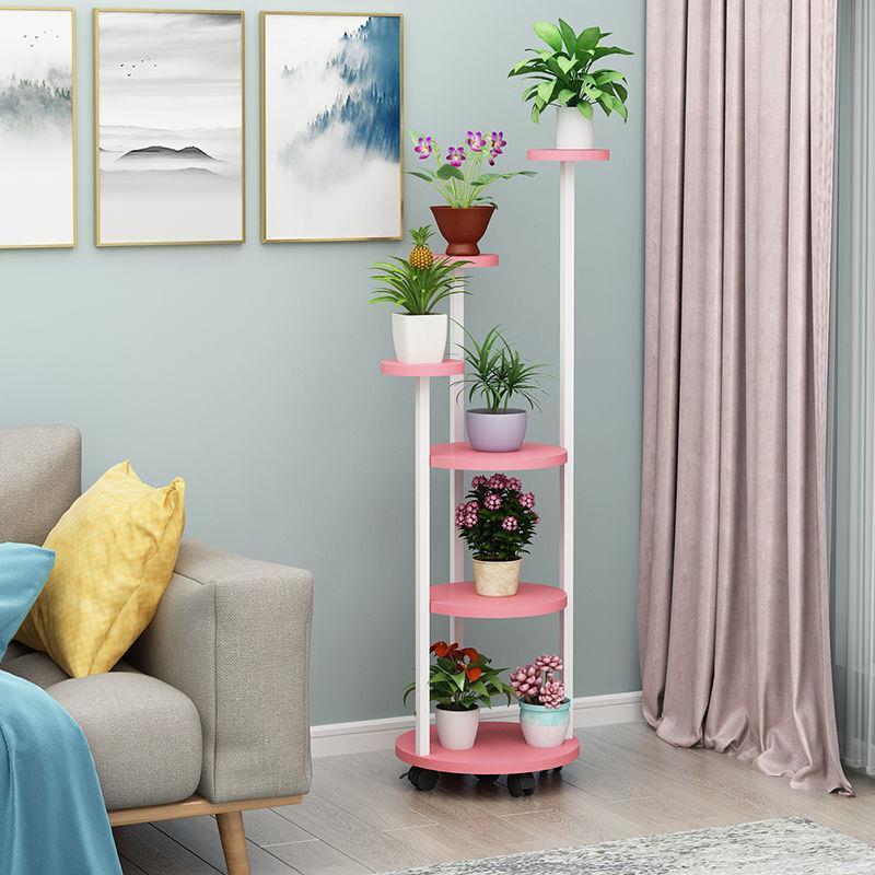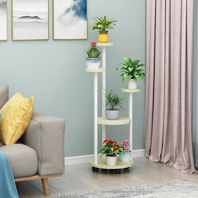 Flower Rack Indoor Multi-storey Mobile Flower Rack Living Room Green Rose Chlorophytum Flower Rack Flower Pot Rack Pulley Round Six Storey White Rack + Yellow Board