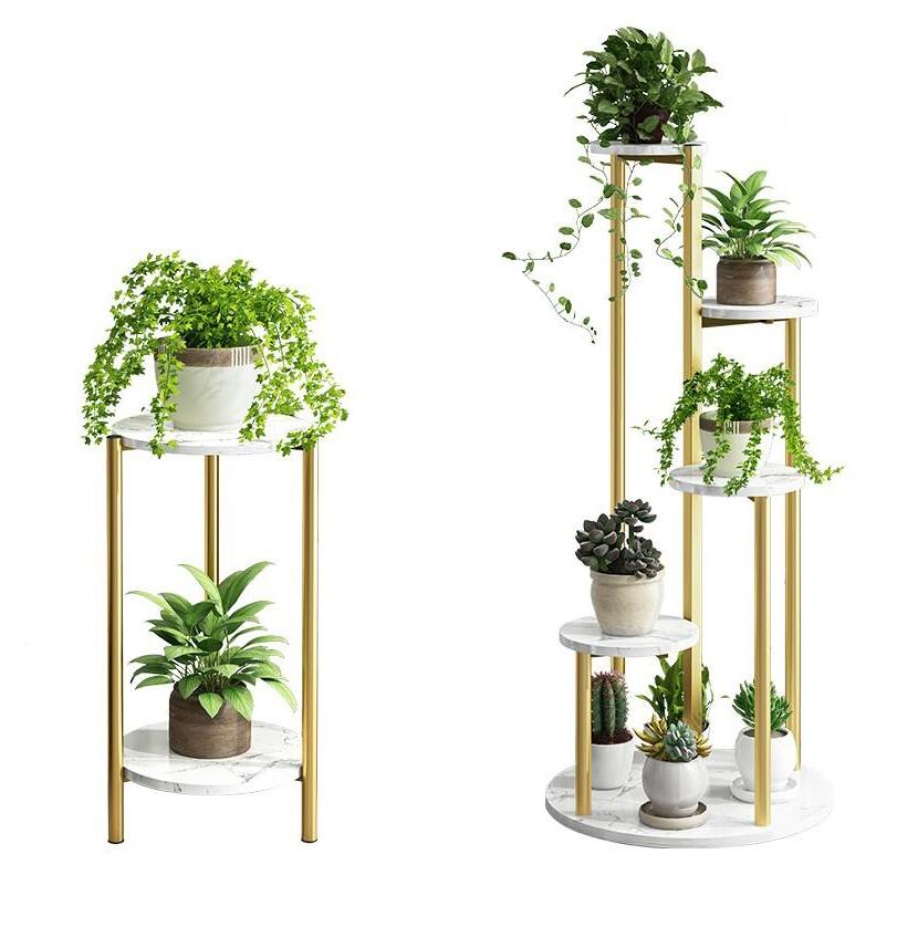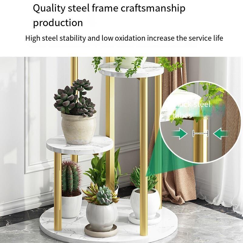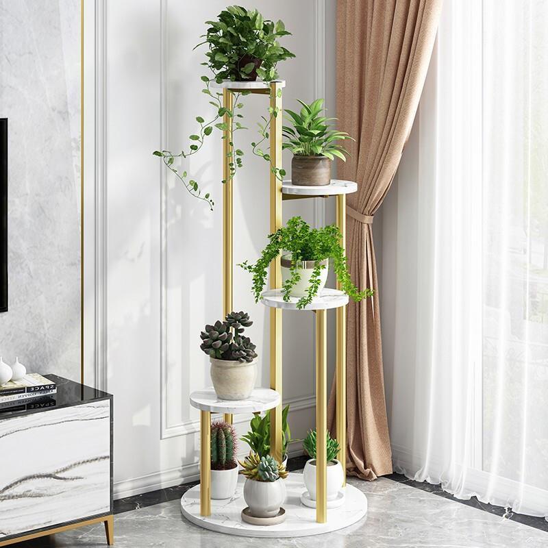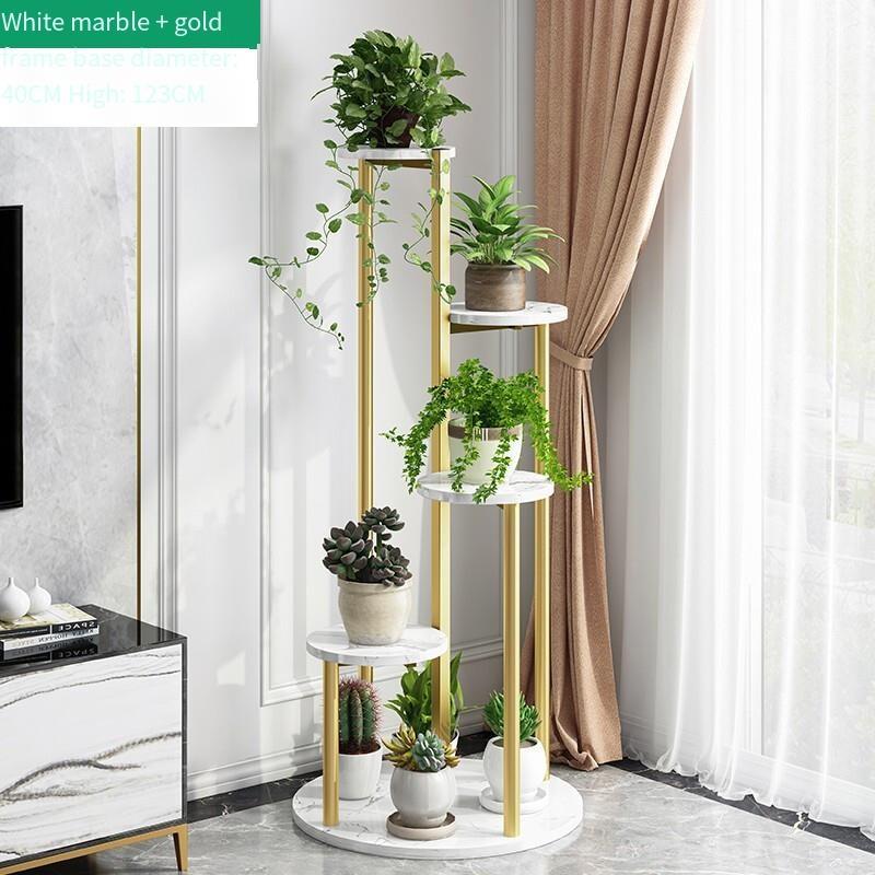 Flower Rack Living Room Light Luxury Pot Balcony Iron Art Floor Potted Green Plant Rack [creative Multi-layer] White Marble