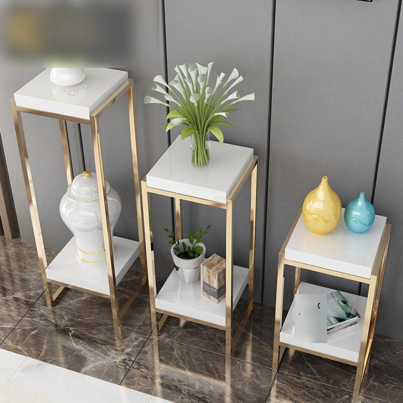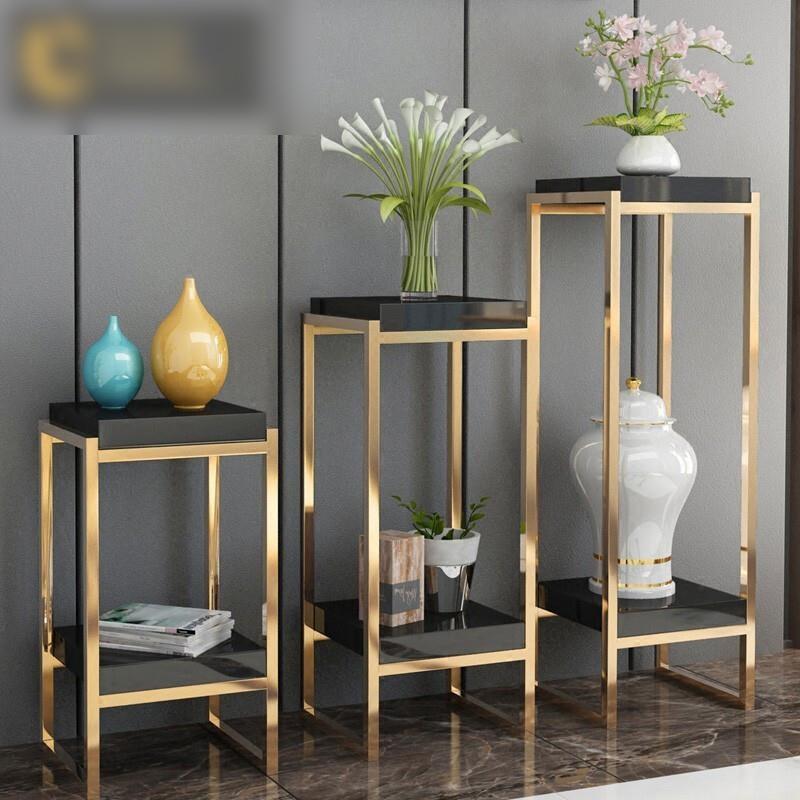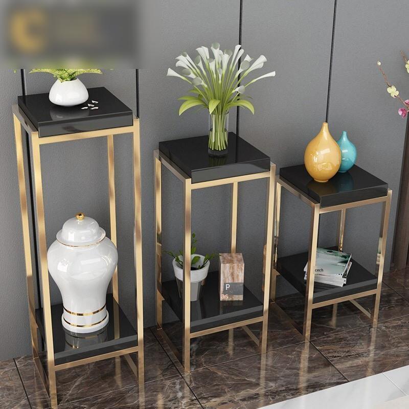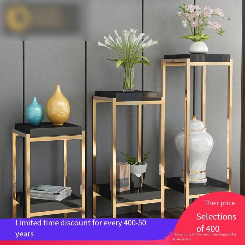 Flower Rack Modern Simple Stainless Steel Indoor Living Room Floor Mounted Multi-storey Flower Pot Rack Black Light Luxury Decorative QS-905 Black Medium: 0.8m