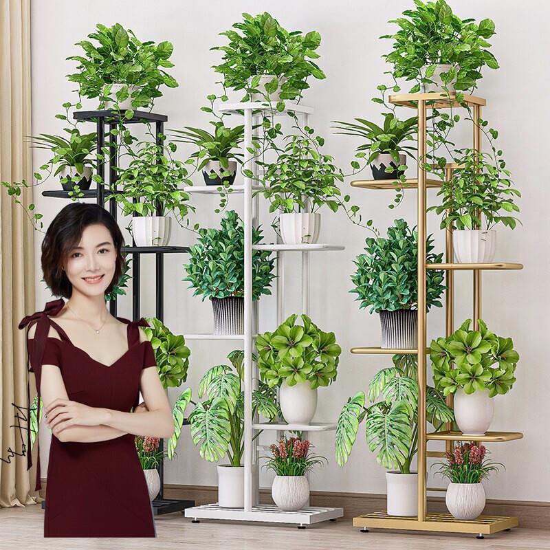 Flower Rack Multi-layer Folding Layer Rack Simple Landing Indoor Household Balcony Decoration Rack Iron Art Living Room Bedroom Simple Green Pineapple Fleshy Dark Gray Flash Silver H916 (6 Basin Upgraded Version)