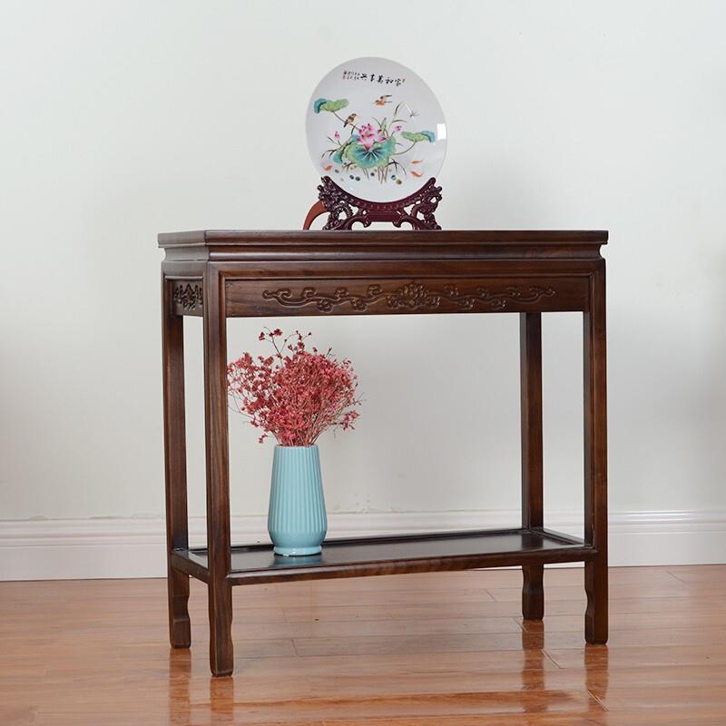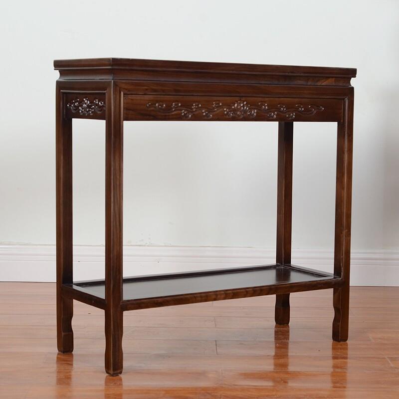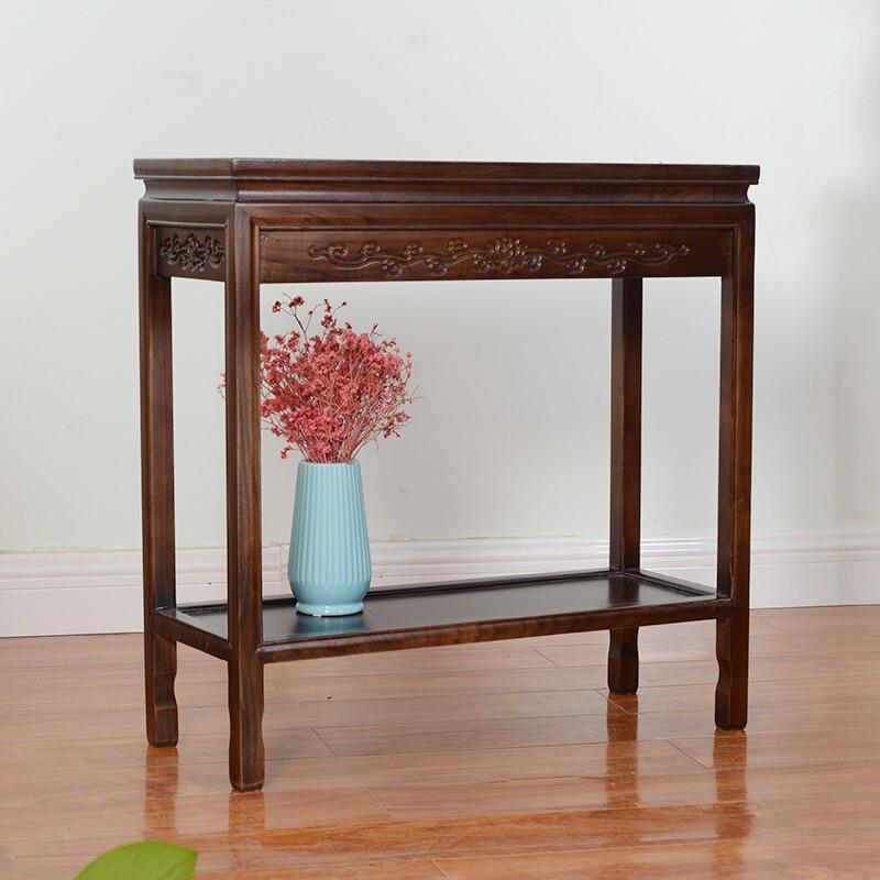 Flower Rack Solid Wood Fish Tank Living Room Bonsai Handicraft Base Multi-layer Rectangular Old Elm Integrated Small Strip Table Boutique Elm Integrated Length 60 Width 28 Height 70 Elegant Black