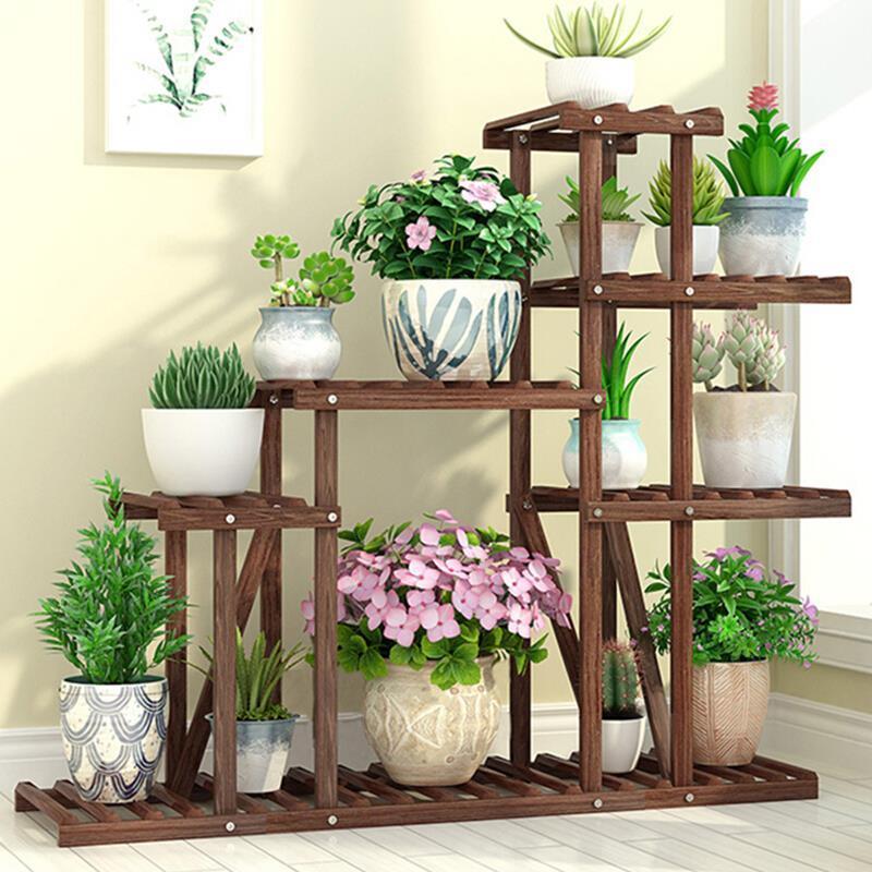 Flower Rack Solid Wood Flower Rack Floor Type Bonsai Rack Balcony Multi-layer Several Basic Flowers