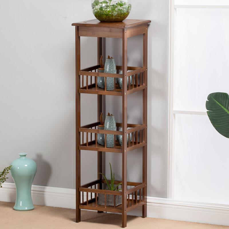 Flower Rack Solid Wood Flower Rack Multi-layer Floor Type Bonsai Rack Balcony Flower Rack Living Room Flower Pot Rack Flower Table Fish Tank Two-layer Brown Fence