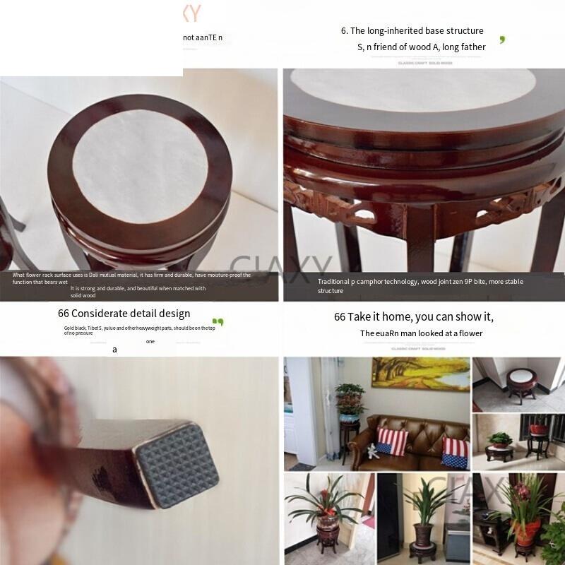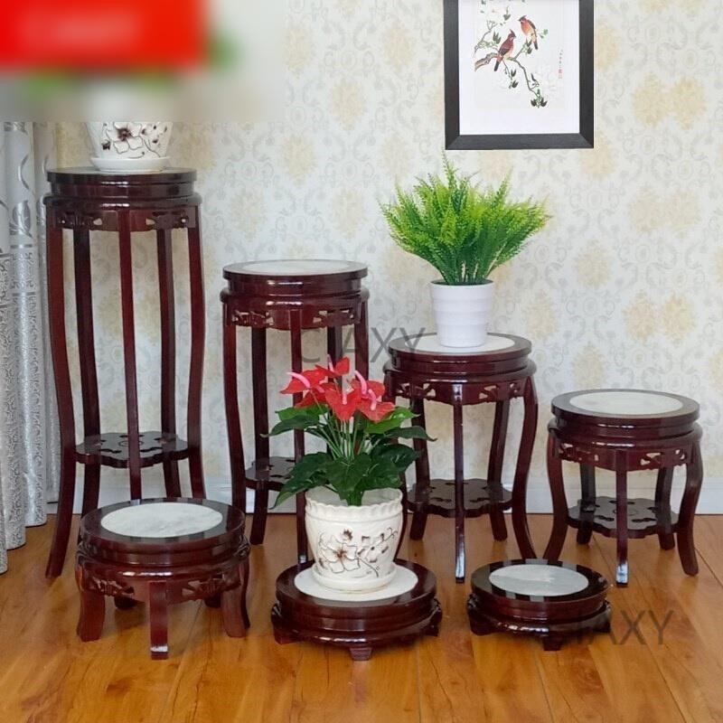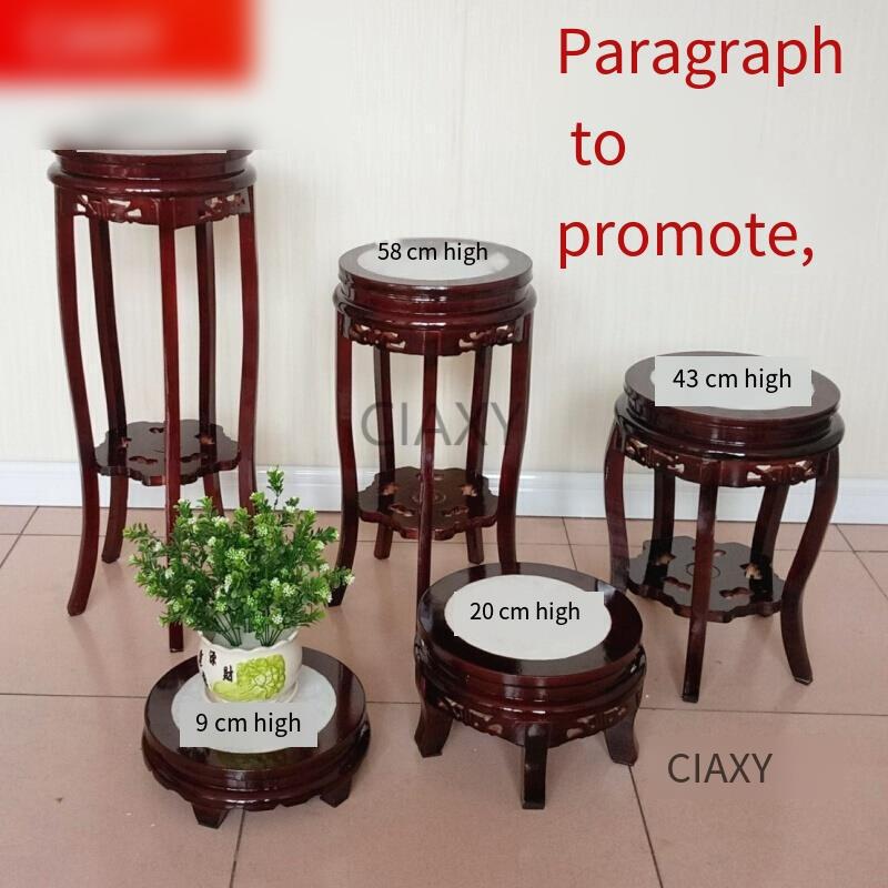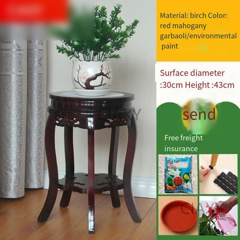 Flower Rack Solid Wood Living Room Chinese Style Single Green Pineapple Landing Indoor Fish Tank Flower Rack For Flower Pot Wooden Short D Side Diameter 30cm High 43cm