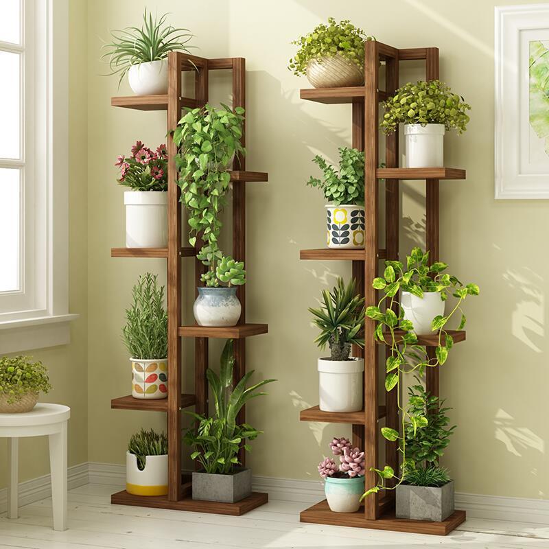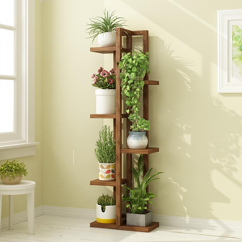 Flower Shelf Solid Wood Multi-layer Indoor Floor Basin Frame Multi Meat Green Pineapple Solid Wood Frame Carbonized Color Six Layers