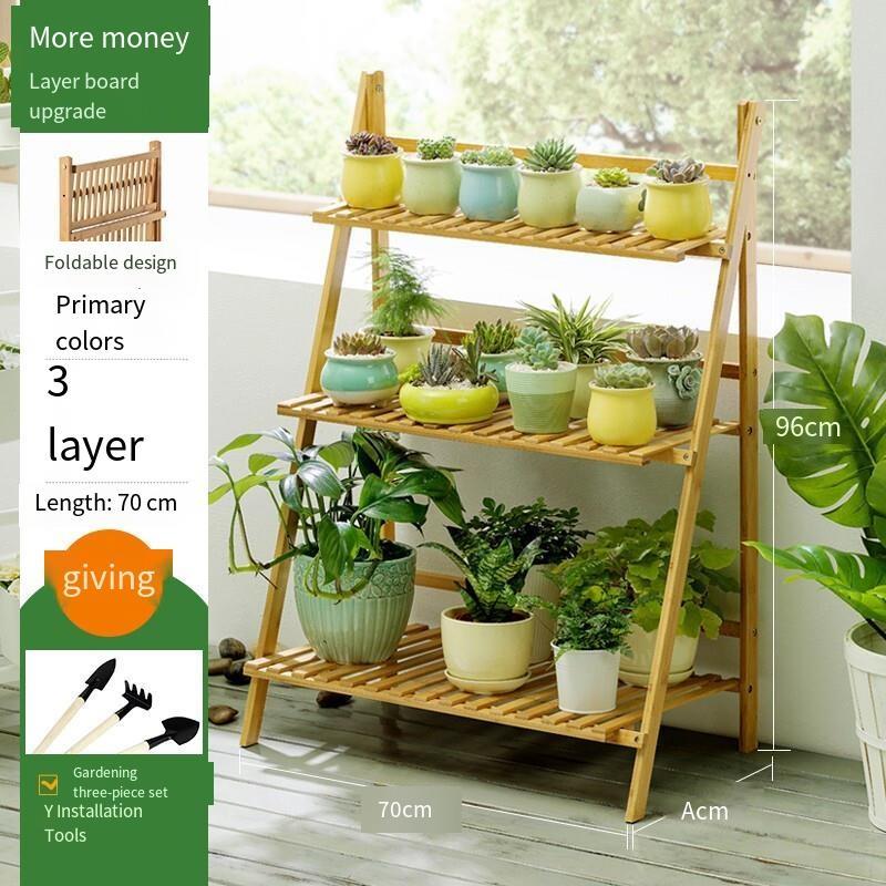 Foldable Simple Living Room Flower Rack Balcony Solid Wood Multi-layer Green Pineapple Landing Indoor Phoebe Flower Pot Rack Storage Layer Rack Storage Layer Rack 3 Layers 70 Primary Color [layer Bar Encryption]