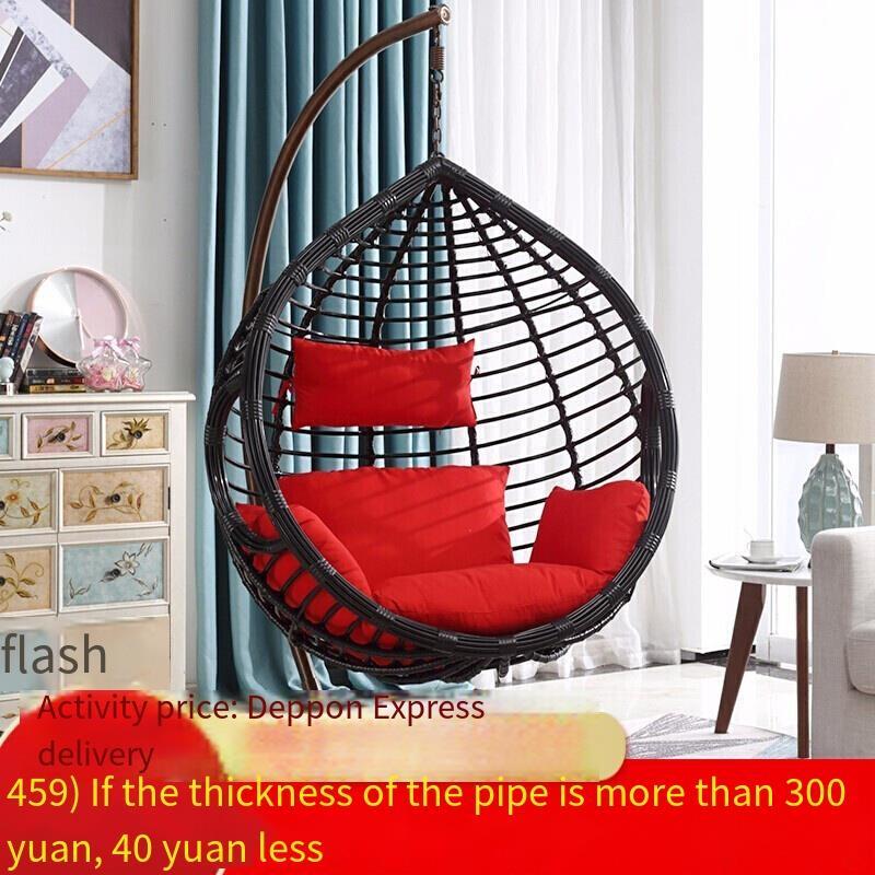 Hanging Basket Chair Coarse Rattan Swing Balcony Indoor Hammock Outdoor Cradle Courtyard Swing Rattan Coarse Rattan Single Person Black + Armrest