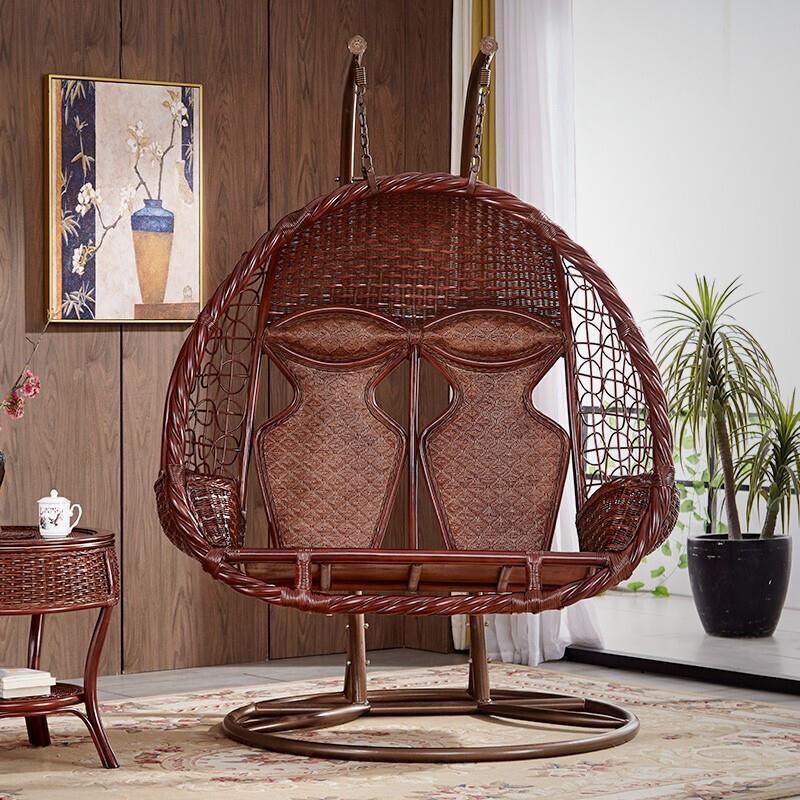 Hanging Basket Chair Double Rocking Chair Balcony Natural Rattan Bird's Nest Rocking Chair Indoor Leisure Chair Swing Chair Rattan Chair Furniture