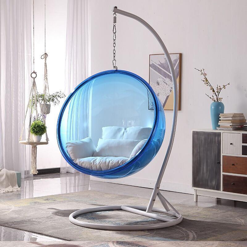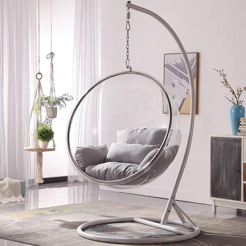 Hanging Basket Rattan Chair Nordic Wind Net Red Glass Ball Transparent Bubble Chair Hemispherical Hanging Chair Space Chair Acrylic Girl Heart Room Sitting Style (round) With Cushion And Lighting