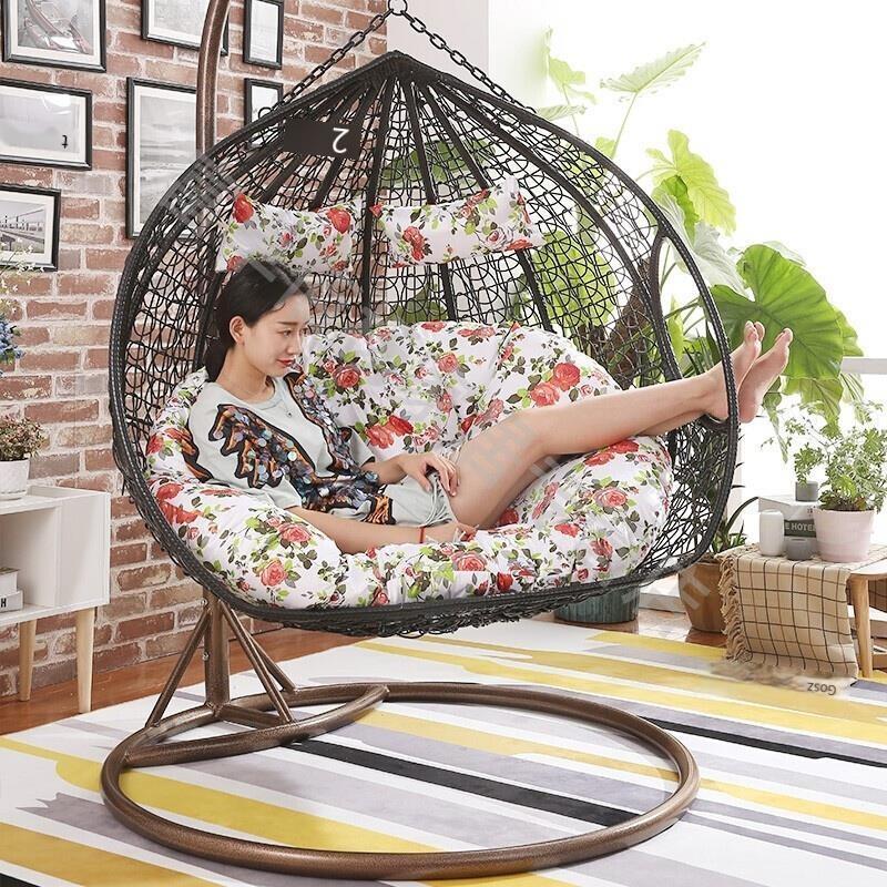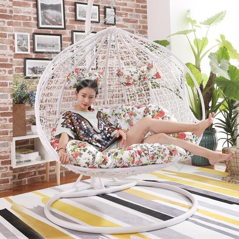 Hanging Basket Rattan Chair Swing Outdoor Household Bedroom Leisure Lazy Indoor Balcony Hammock Cradle Rocking Double White (with Armrest)