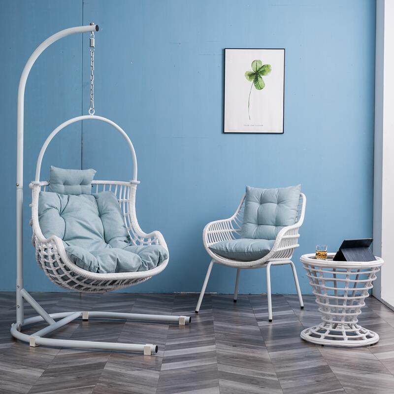 Hanging Basket Rattan Chair Indoor Household Balcony Leisure Rocking Chair Lazy Net Red Bird's Nest Hanging Orchid Chair Three Pieces White