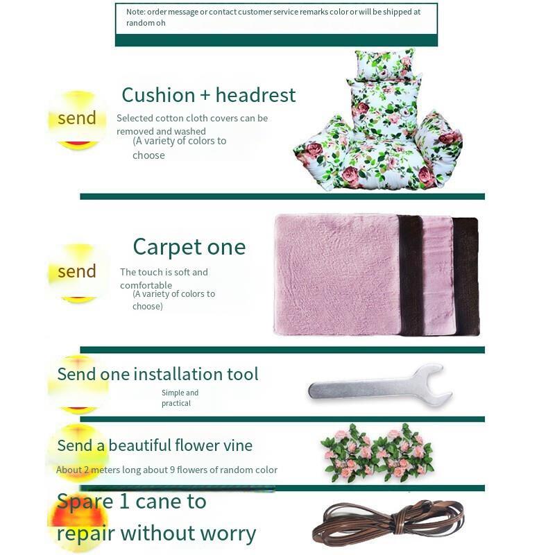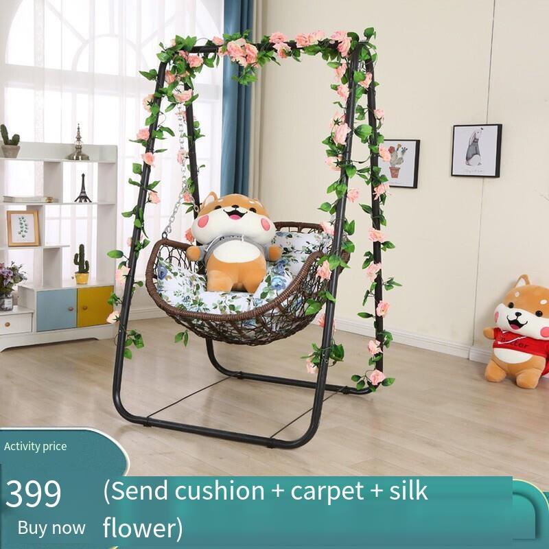 Hanging Chair Basket Cane Swing Indoor Cradle Hammock Bedroom Balcony Leisure Bird's Nest Orchid Rocking Courtyard Single Adult Net Red [ordinary] White Swing + Cushion + Carpet