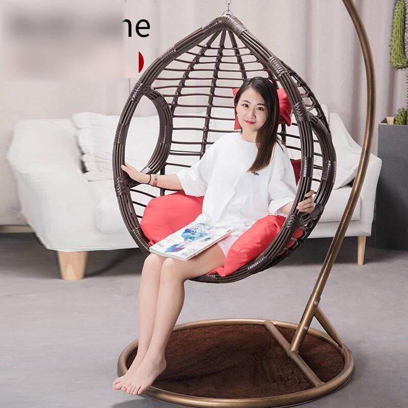 Hanging Chair Hanging Basket Coarse Rattan Chair Household Double Chair Cradle Outdoor Balcony Swing Hanging Chair Indoor Coarse Rattan Single Lazy Cradle Chair Luxury Coarse Rattan With Armrest Brown Pole+