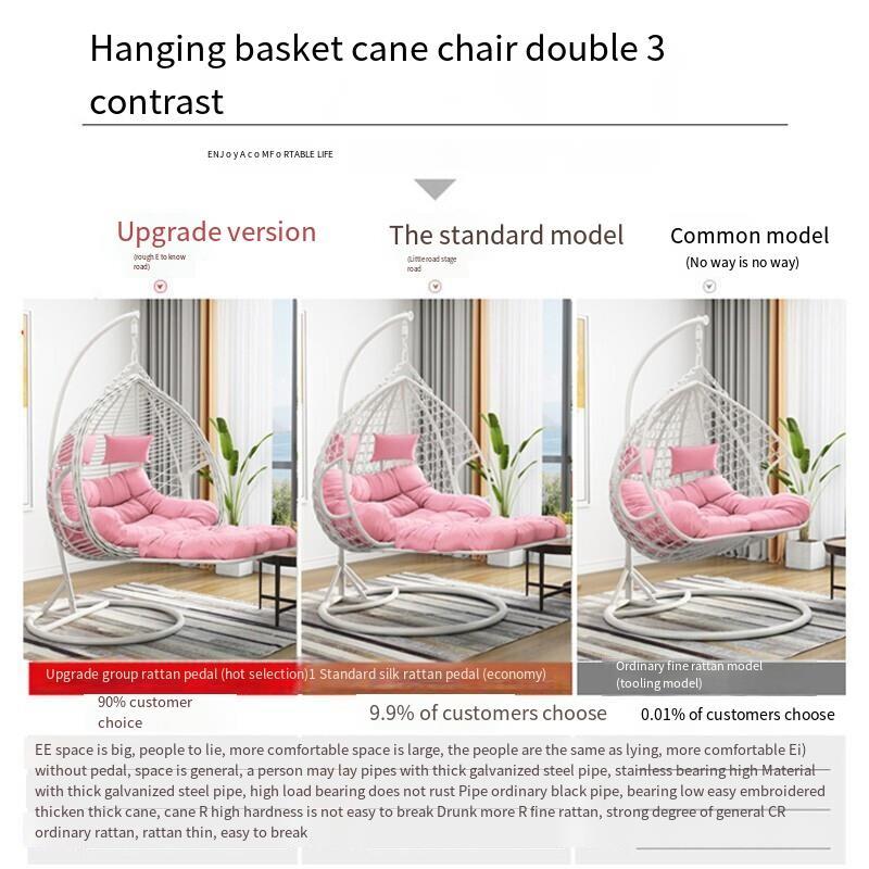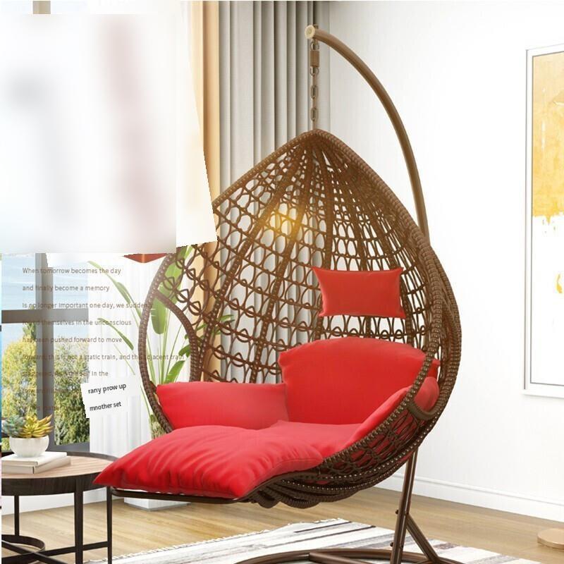 Hanging Chair Household Balcony Basket Rattan Indoor Room Dormitory Swing Rocking Outdoor Double Lazy Hammock European Bird's Nest Drop Single Coffee - Deluxe Version [armrest + Large]