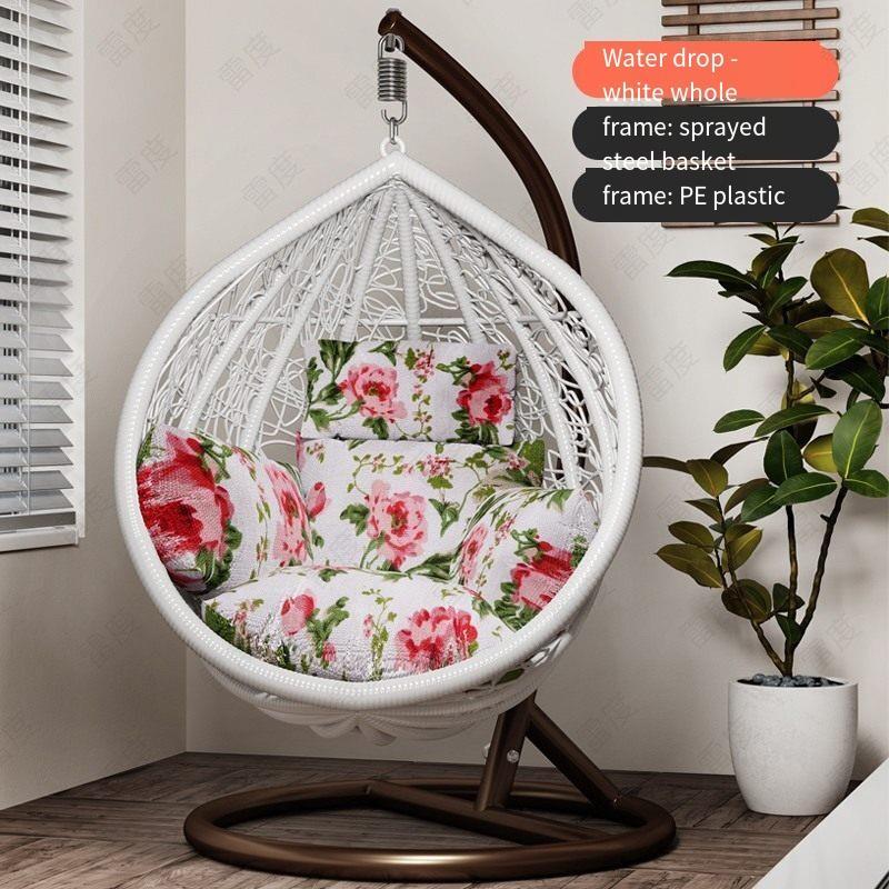 Hanging Chair Outdoor Swing Basket Rattan Household Leisure Lazy Indoor Balcony Bird's Nest Hammock Cradle Rocking Luxury White (bold Rattan) With Pillow