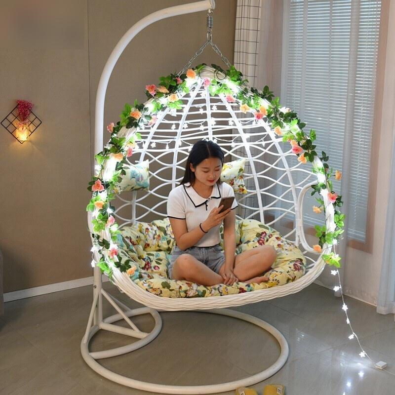 Hanging Chair Swing Home Stay Rocking Blue Chair Indoor Hanging Basket Rattan Chair Balcony Leisure Tesiyou Rocking Chair Single White