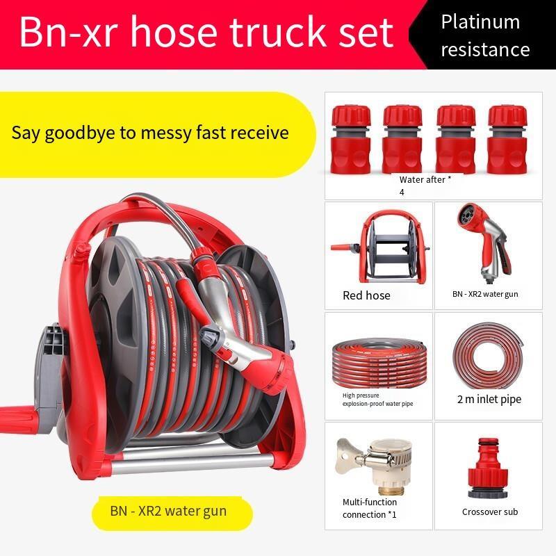 High Pressure Car Washing Water Gun Water Pipe Hose Set Household Portable Gardening Artifact Water Pipe Truck Storage Rack Pipe Reel Bn-xr2 Water Pipe Truck Set + Gray 20m Water Pipe