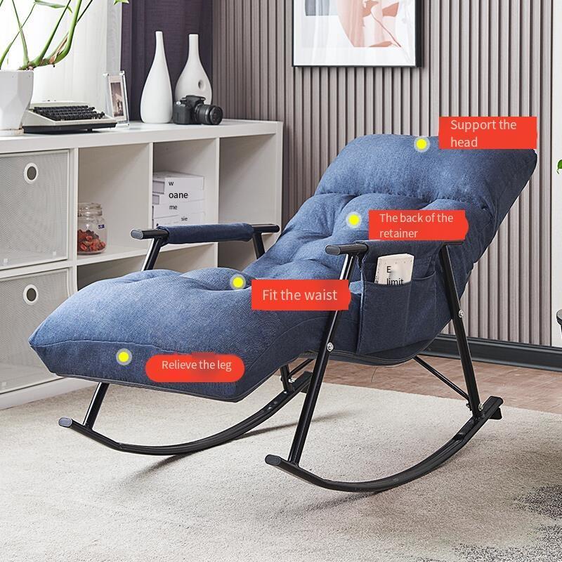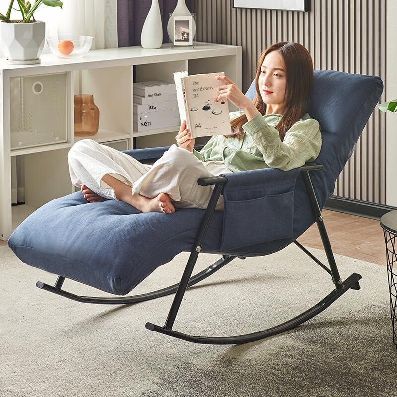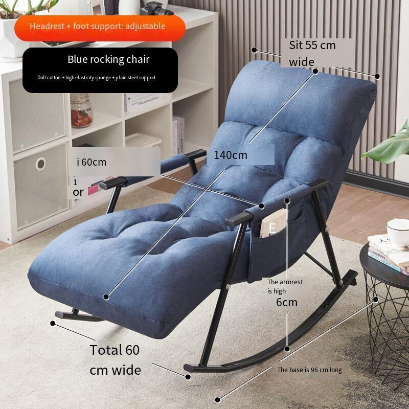 Home Back Balcony Rocking Chair Nordic Adult Chair Lunch Break Casual Chair Blue (headrest + Pedal Back Adjustable)
