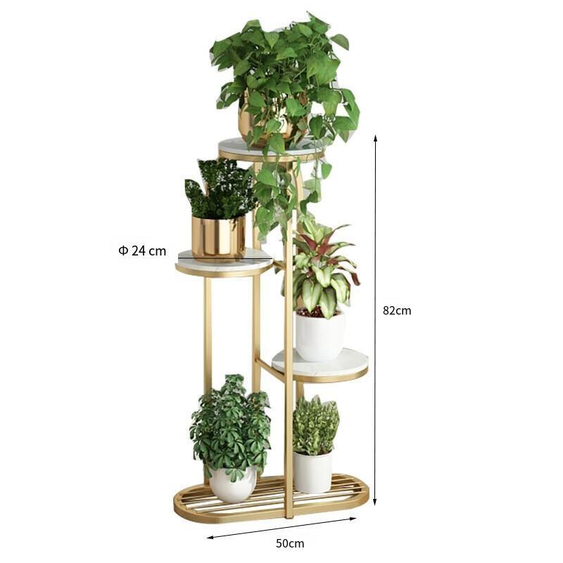 Home Nordic Modern Iron Flower Rack Indoor Multi-layer Green Plant Flower Pot Rack Living Room Rack Balcony Simple Floor Flower Table Three Layers Of Gold