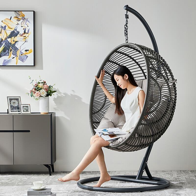 Hanging Chair Hanging Basket Cradle Swing Rocking Chair Outdoor Rattan Chair Household Lazy Net Red Bird's Nest Hanging Chair Dark Gray
